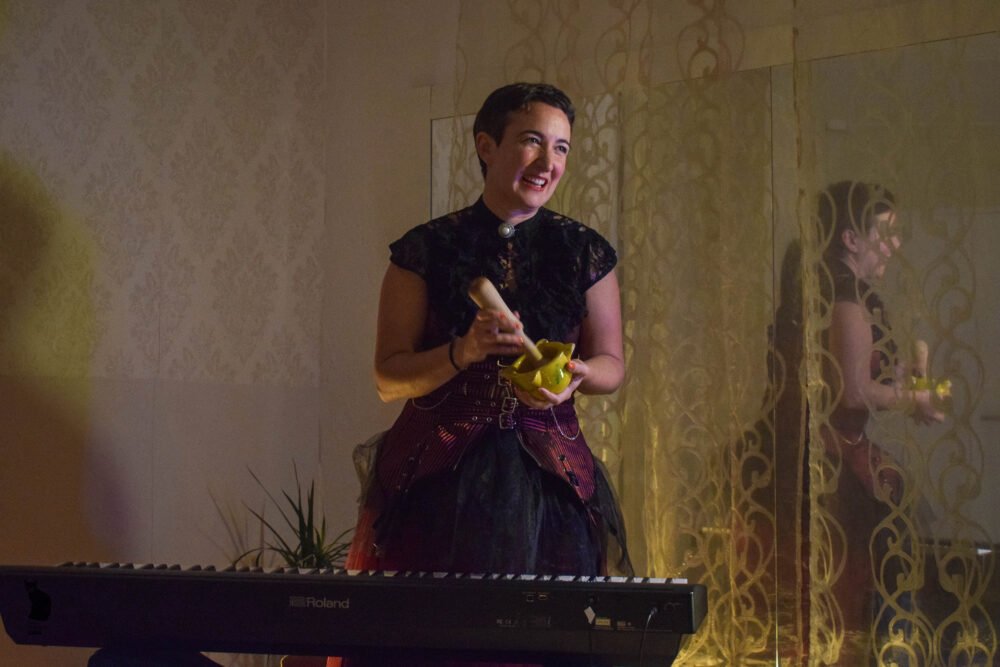 Aldegunda Vegara es una dama del cabaret, de la magia, de la performance. Una gran palanca para tanta gente variopinta. Su asociación cultural Gruñidos Salvajes lleva desde los 80 siendo un vórtice de vanguardia y de inspiración de libertad y del arte más rabiosamente experimental.
