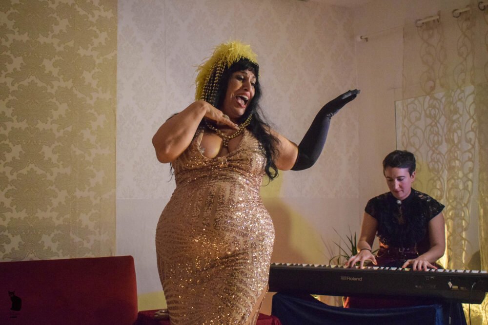 AV: De ahí surgió lo nuestro del cuplé, que aún tenemos activo y que en diciembre va a estar en la cartelera de Espacio en blanco. O sea, que en diciembre vamos a actuar con nuestras diosas y el cuplé, con mucho sentido del humor y de la vida.