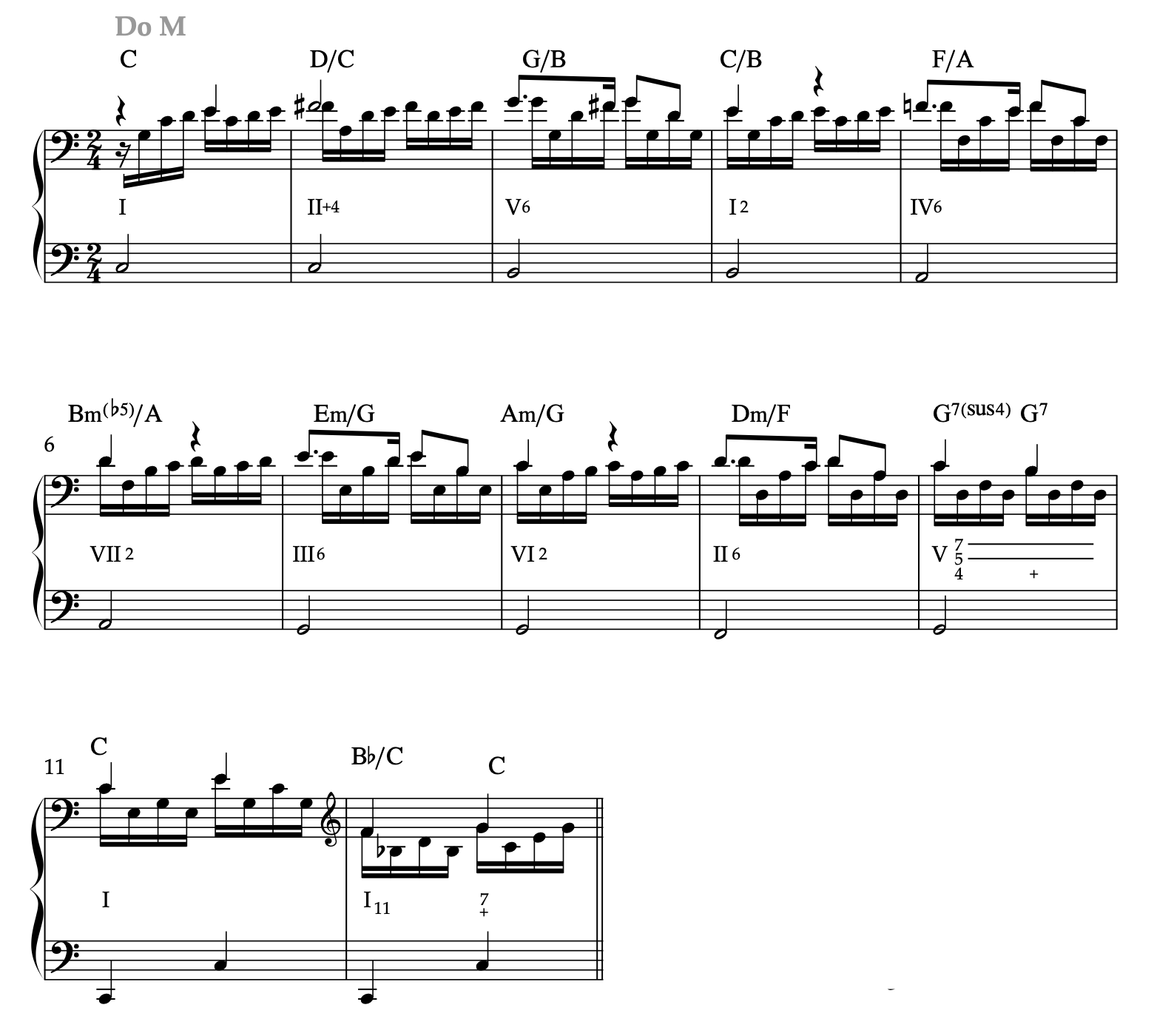 – He puesto los acordes en cifrado funcional entre los dos pentagramas, para que podáis comparar ambos cifrados.