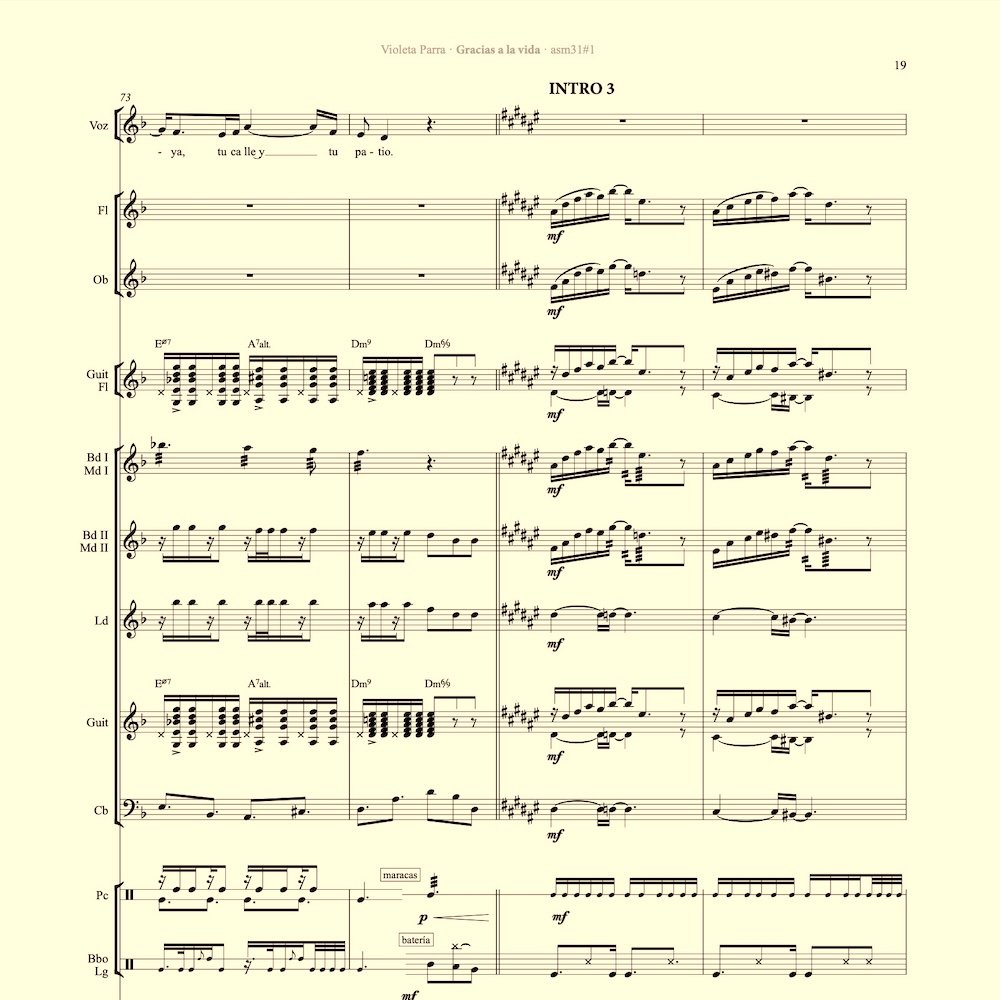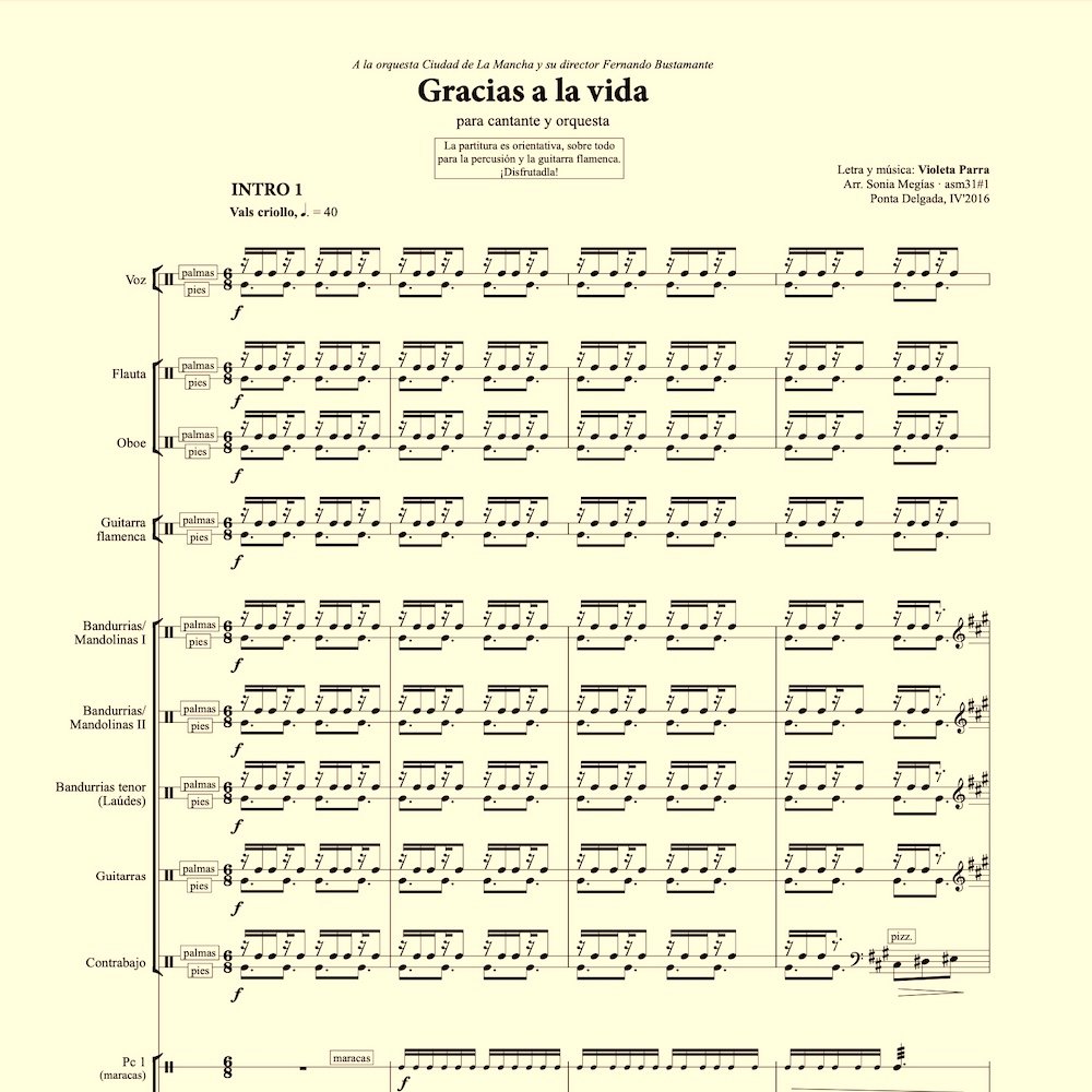 Song by Chilish folksinger Violeta Parra, arranged for solo singer with plectrum orchestra with winds, percussion and keyboards.
