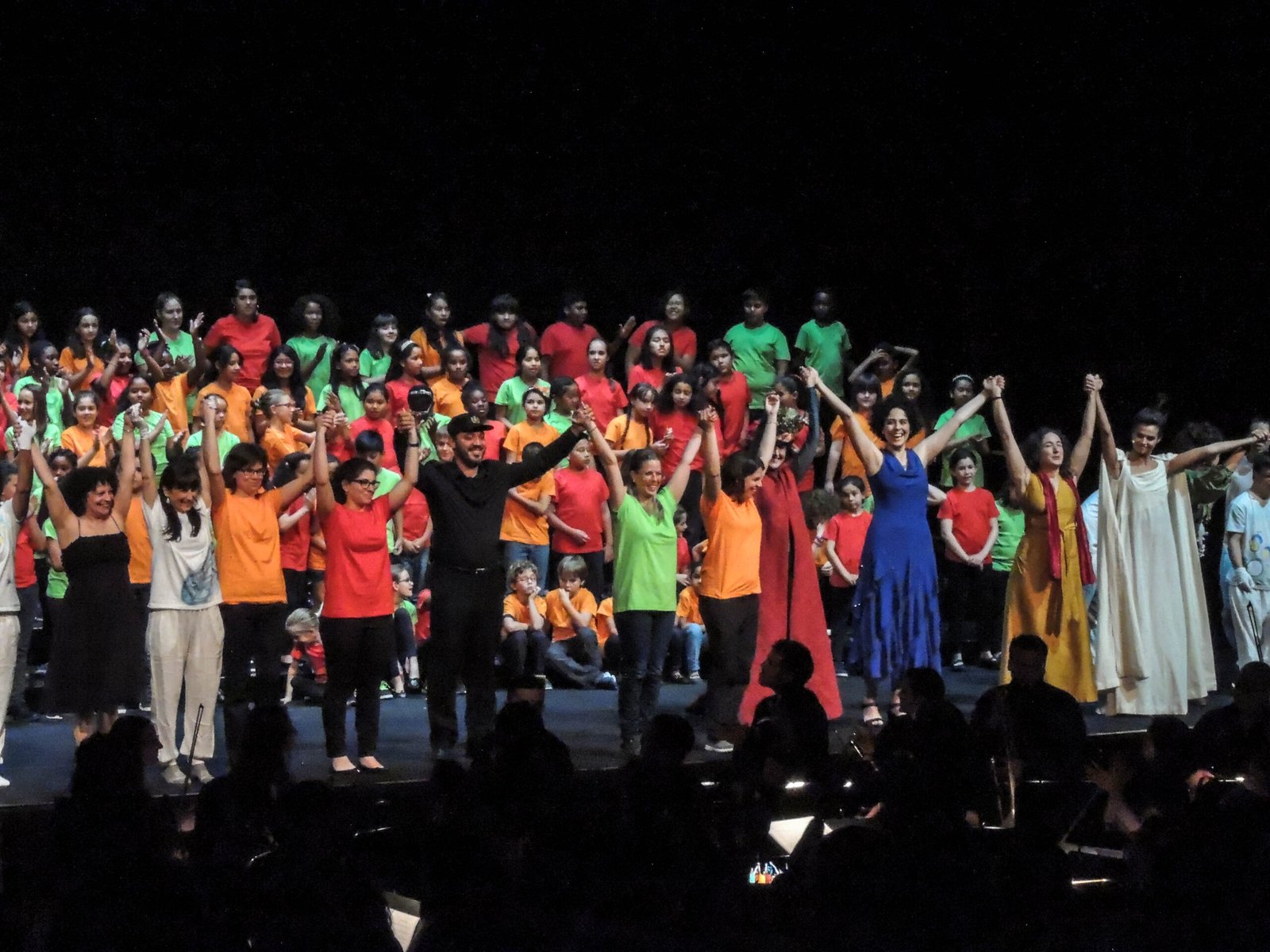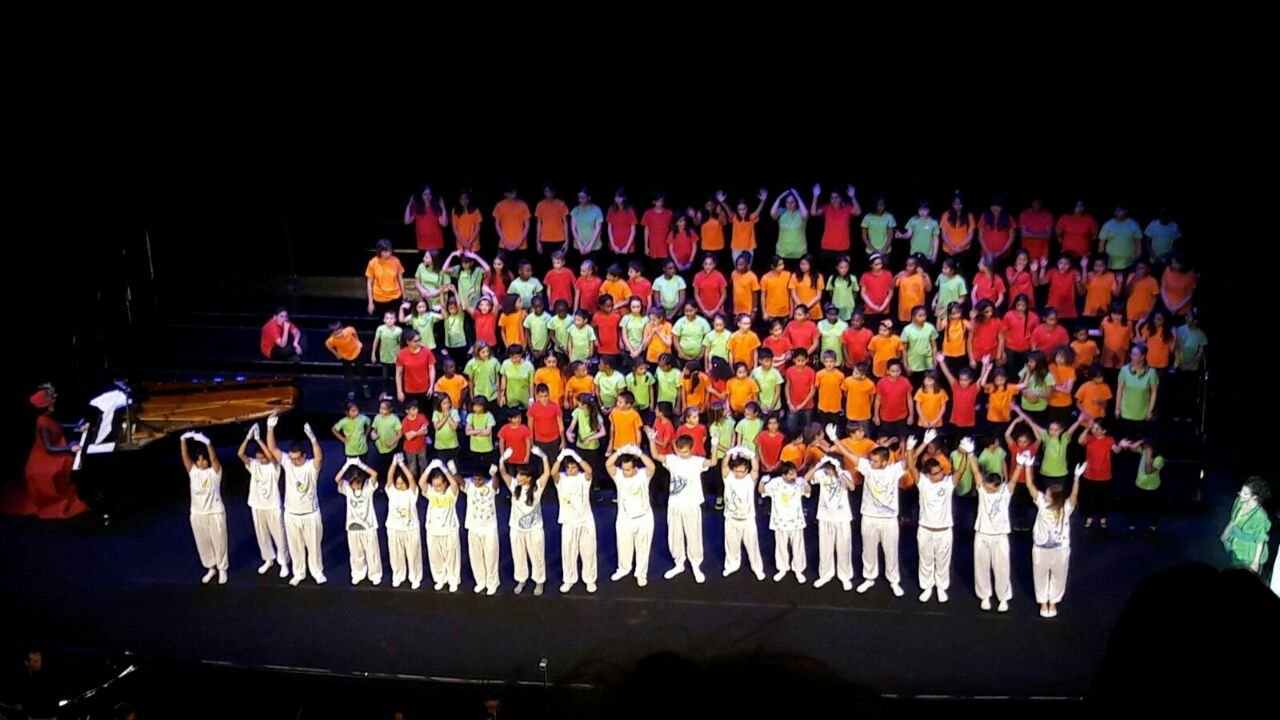 Instrumentation solistas + coro infantil + coro adulto + orquesta infantil + orquesta adulta