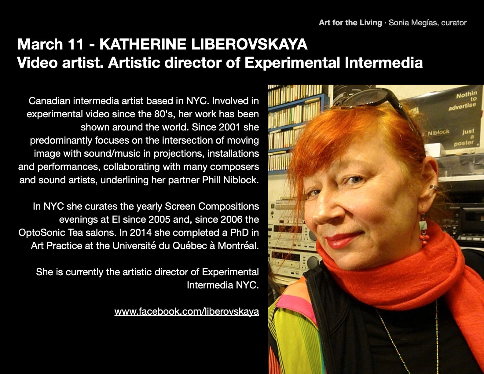 La segunda es la videoartista Katherine Liberovskaya, actual directora del Experimental Intermedia, lugar que me cambió la vida y donde nació el CoroDelantal.